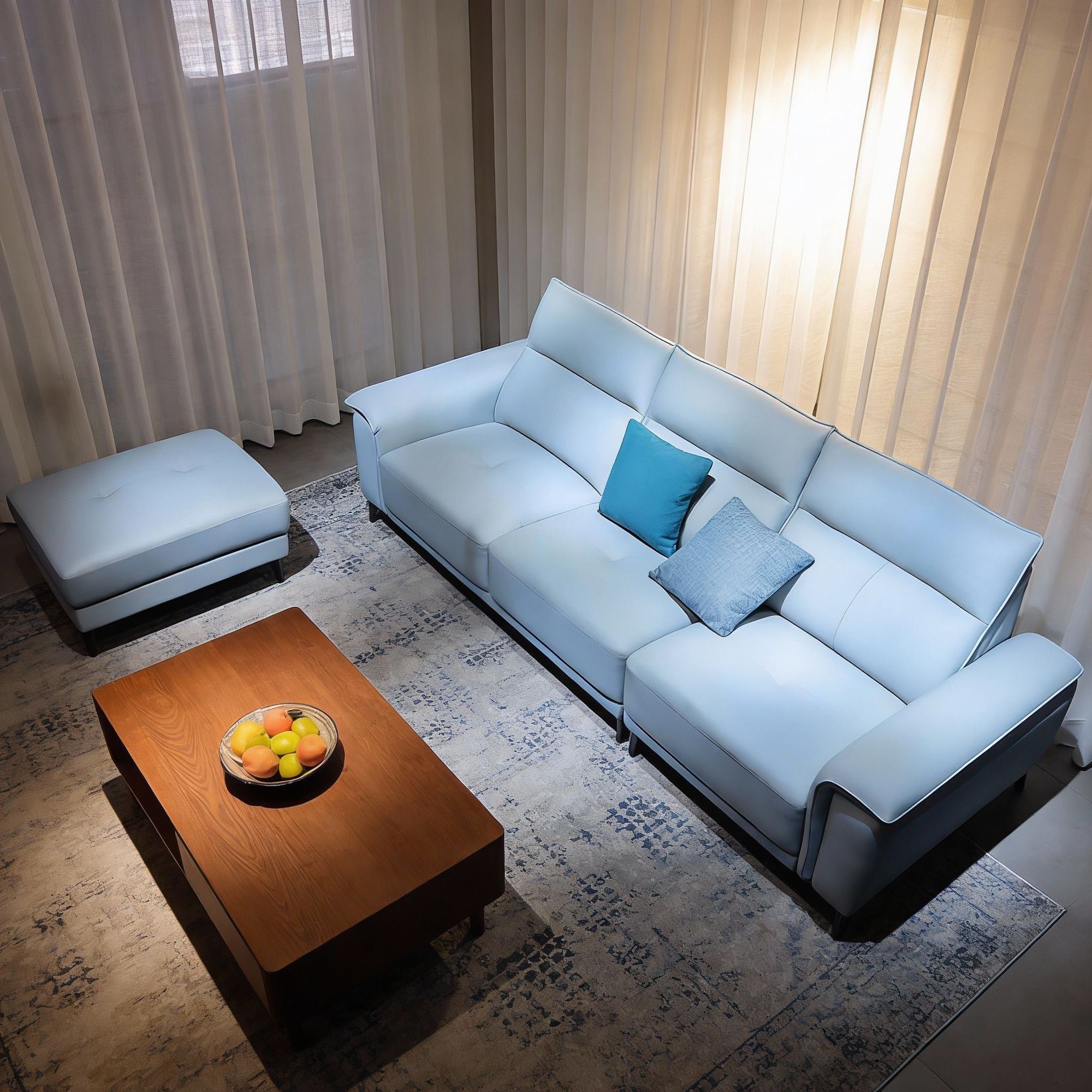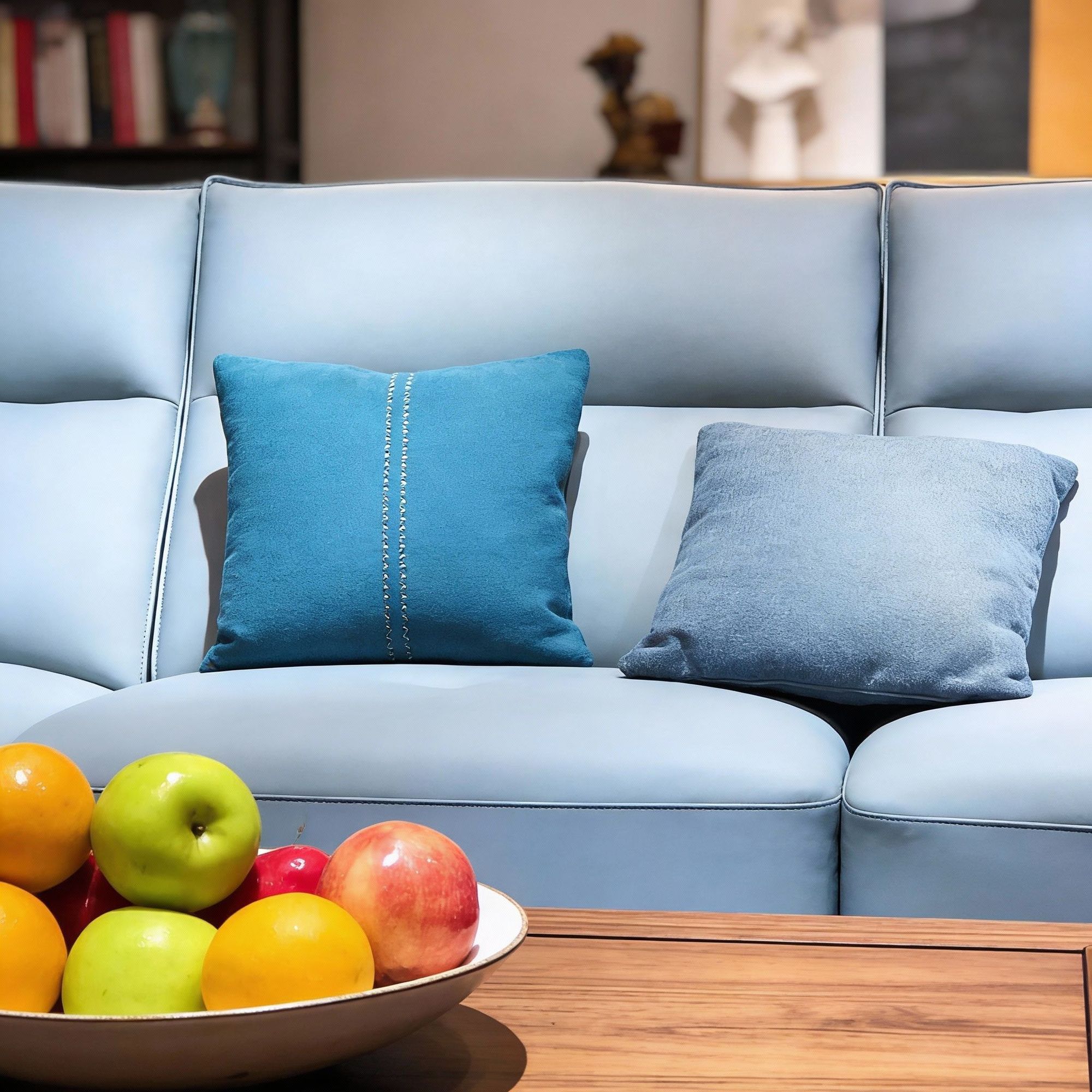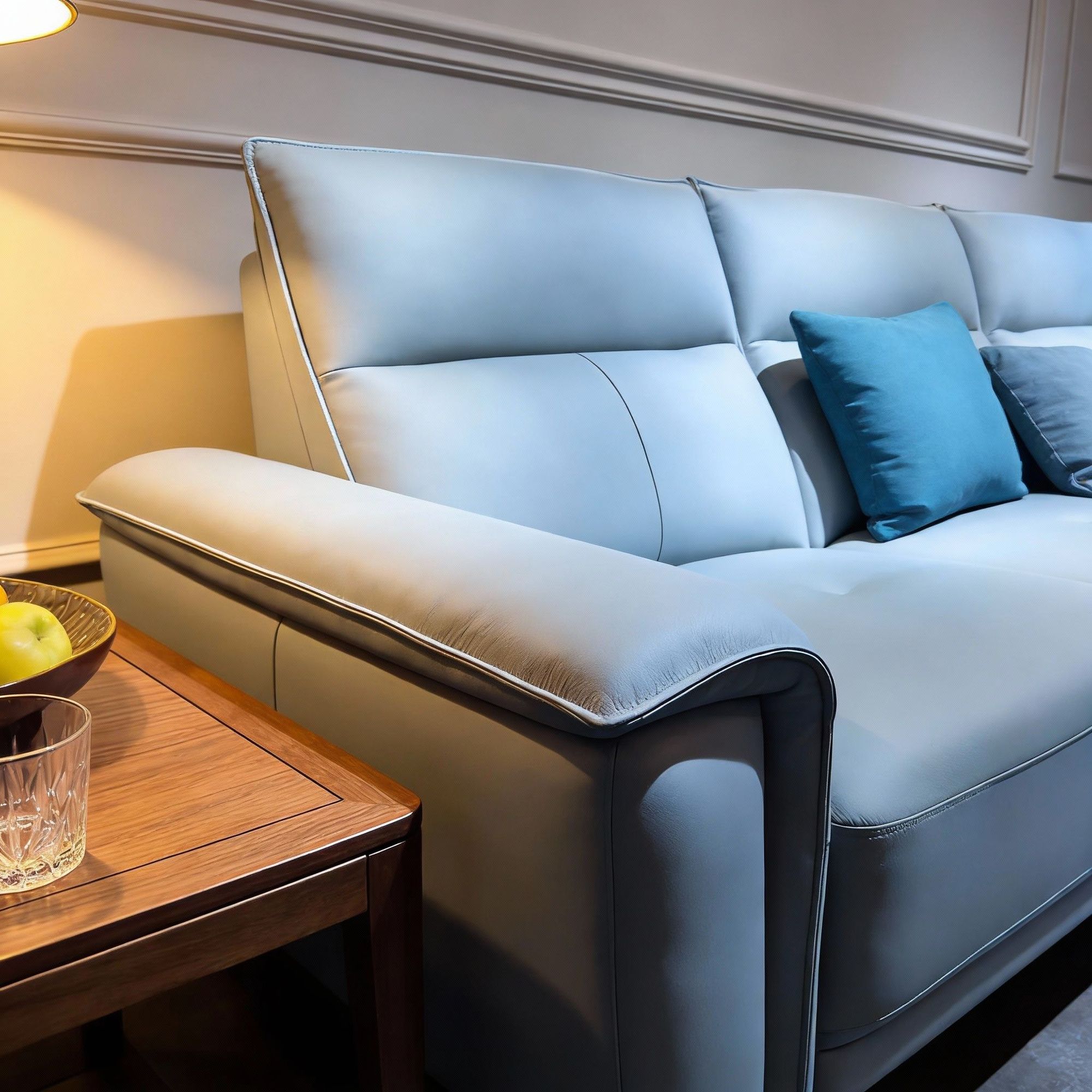 材料: 松木框架、坐垫高回弹海绵、填充物舒弹棉、面料头层牛皮+配皮